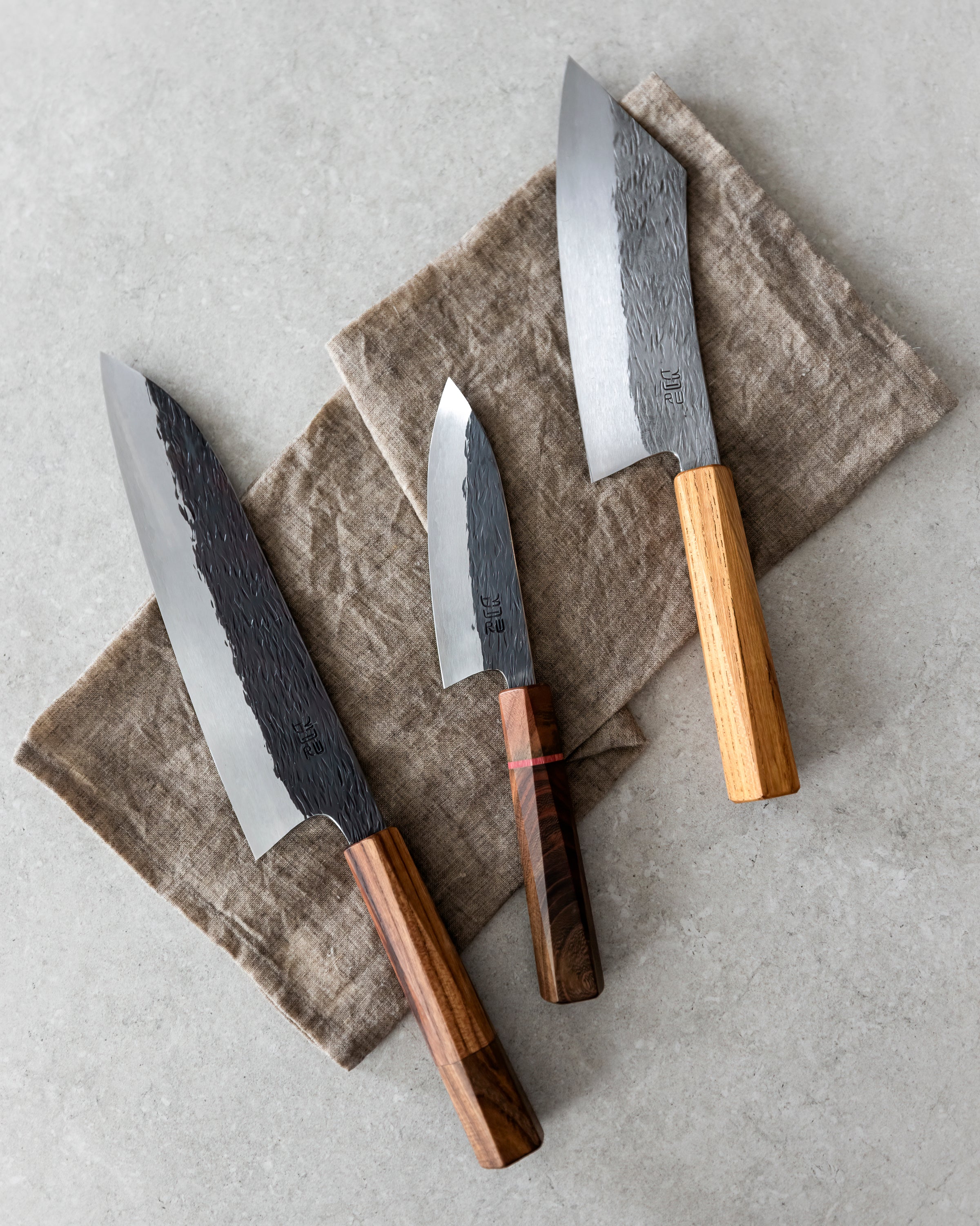Les couteaux en carbone nécessitent une attention particulière car ils sont réactifs et sujets à la rouille. Veillez à essuyer régulièrement la lame pendant son utilisation, ainsi qu'à la laver et à la sécher soigneusement une fois terminée. Cependant, après qu'une belle patine robuste s'est formée sur la lame, elle sera moins sujette à la rouille. La patine est votre alliée !