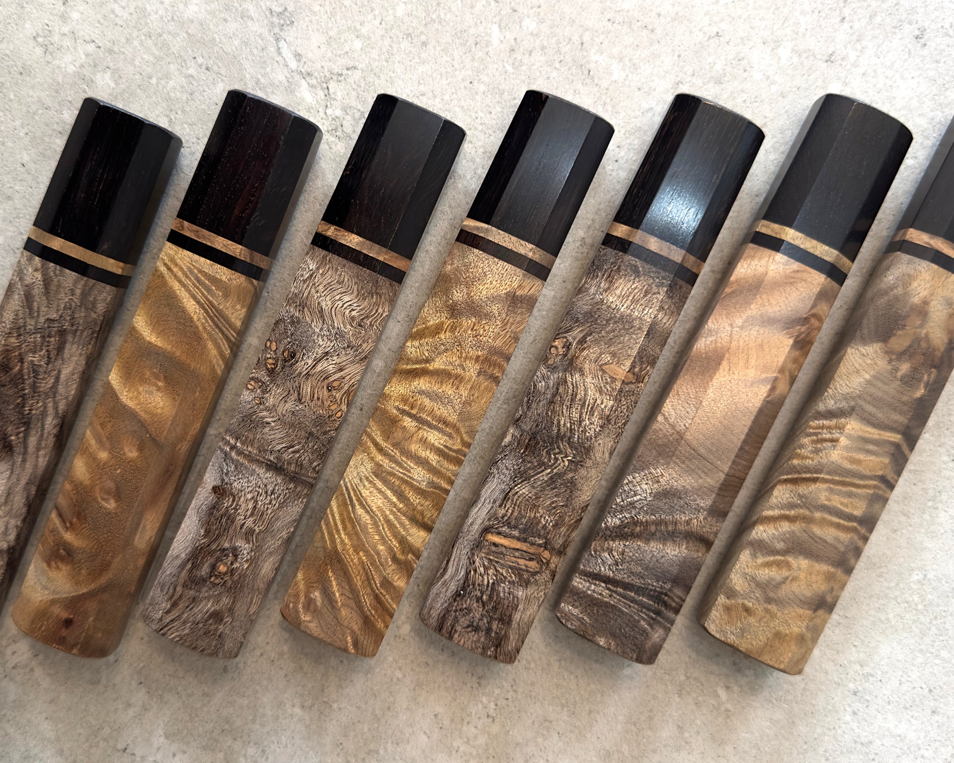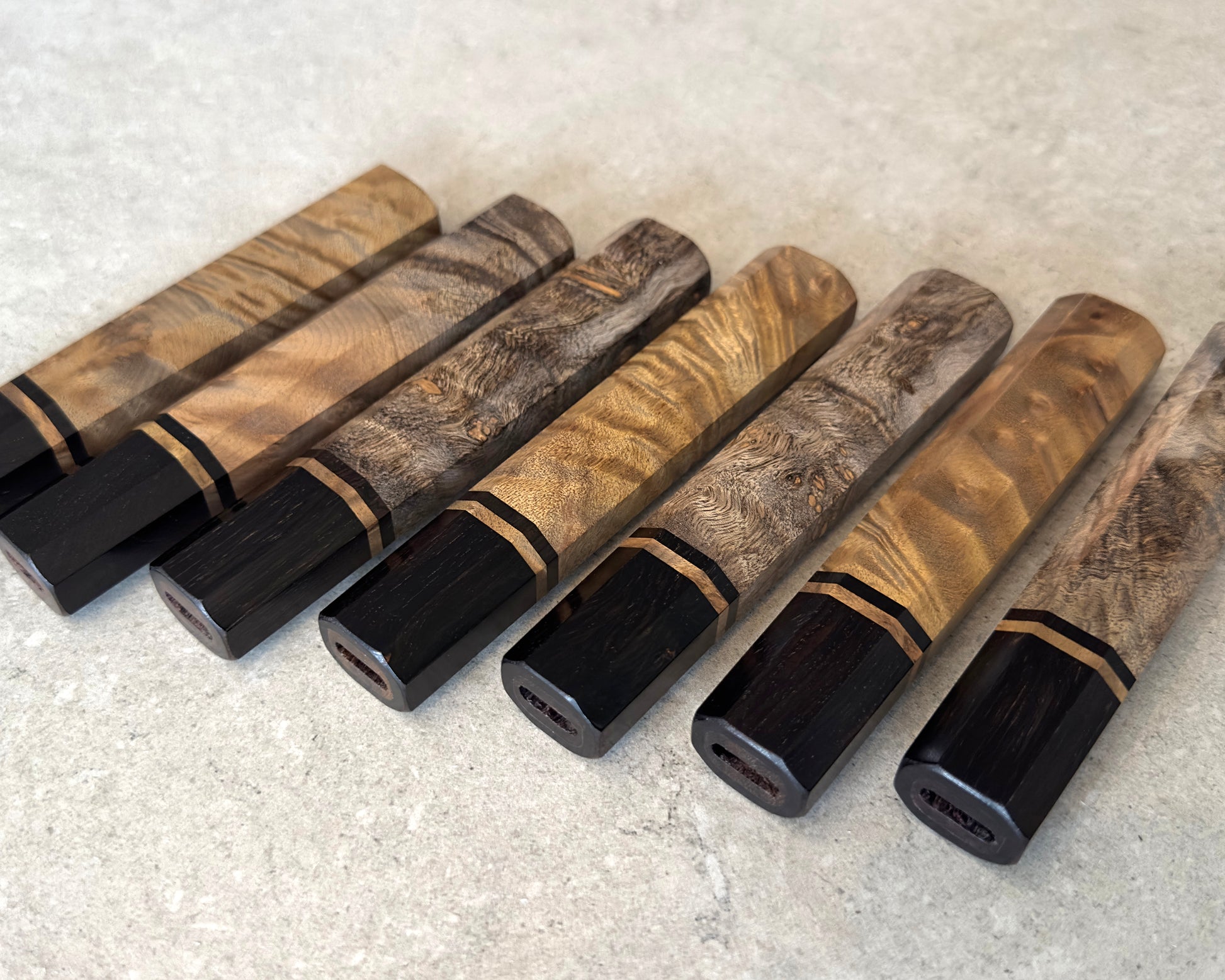 Les teintes de bois peuvent légèrement varier d’un manche à l’autre en raison des caractéristiques naturelles du matériau. Chaque pièce est unique.