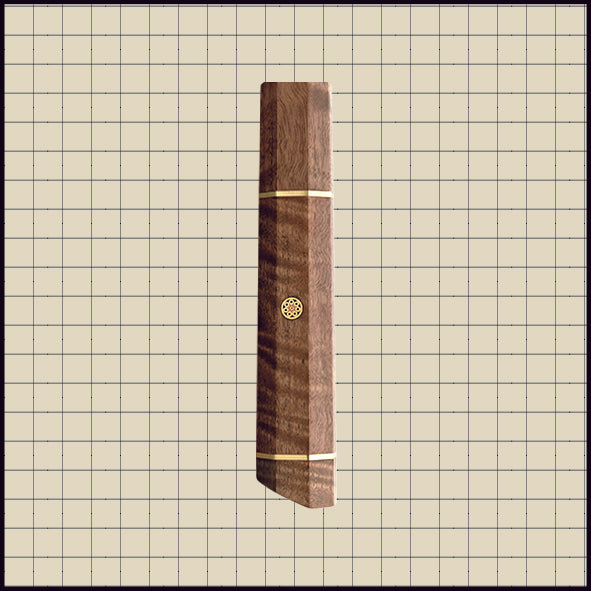 Matériaux | Lila des Indes, rivet central en laiton et intercalaires en laiton
