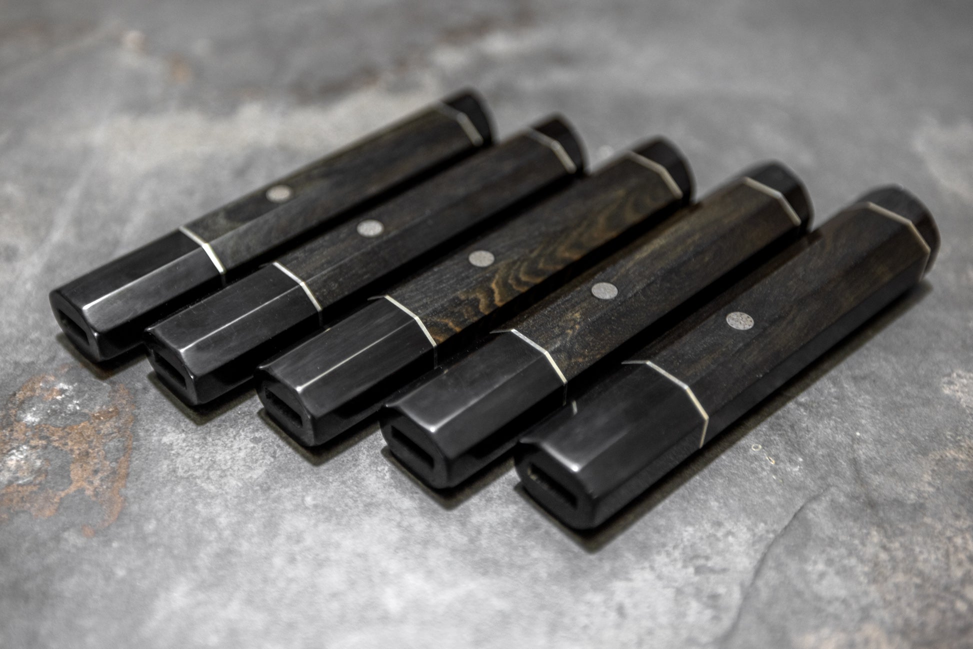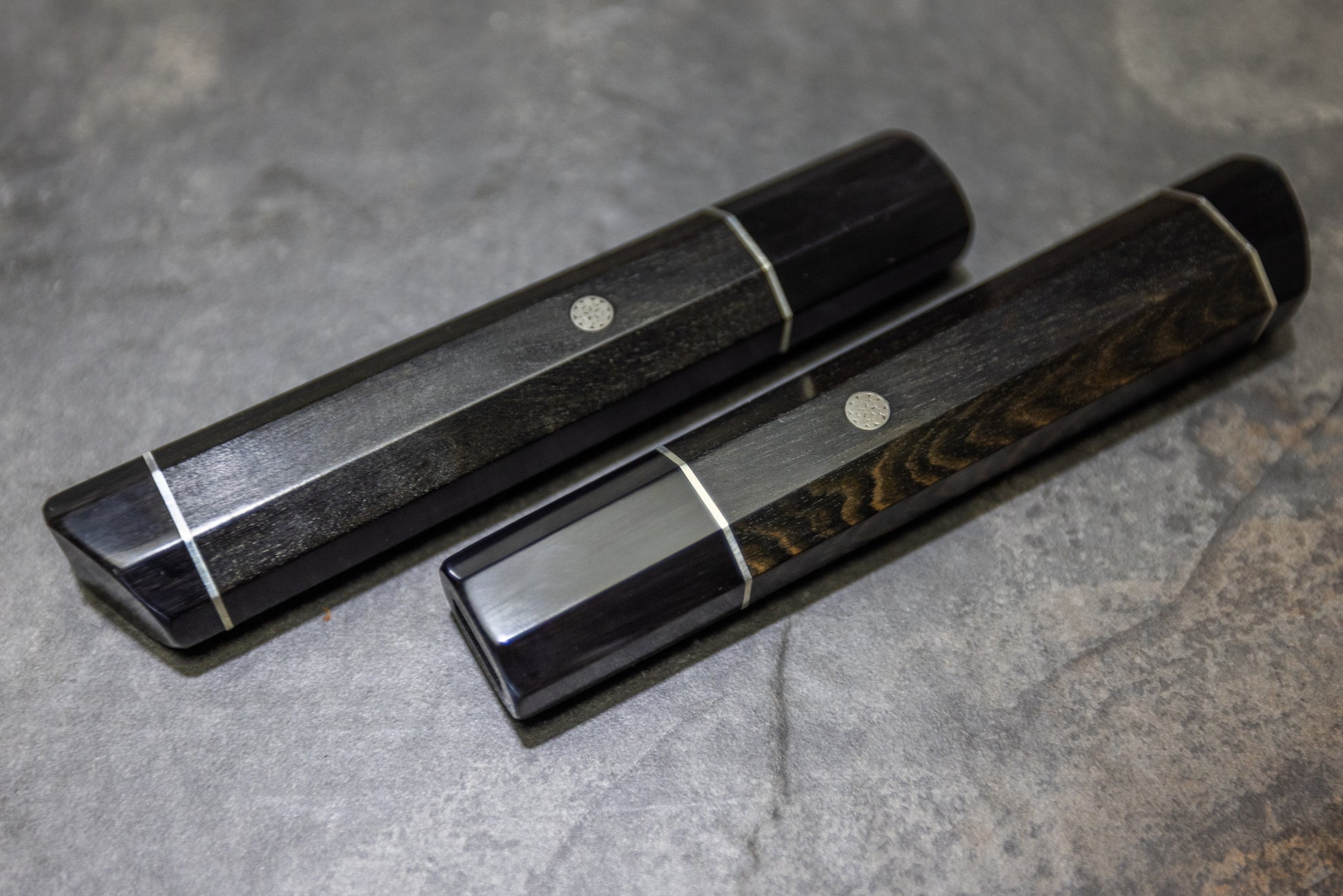 Matériaux | Ébène, extrémités en corne de buffle noire, rivet central en nickel et intercalaires en nickel